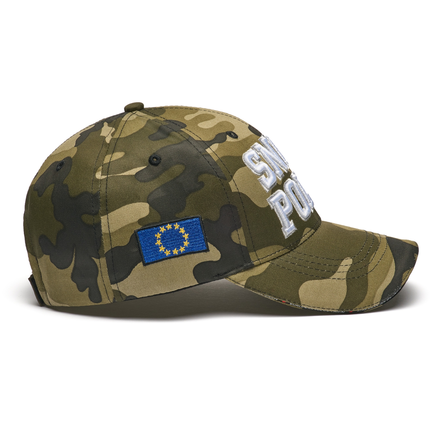 Broderie 3D executata impecabil, pe panoul central al sepcii, tricolorul si steagul UE, de asemenea sunt brodate pe părțile laterale, broderii standard pe cozoroc si pe banda velcro de la spate.